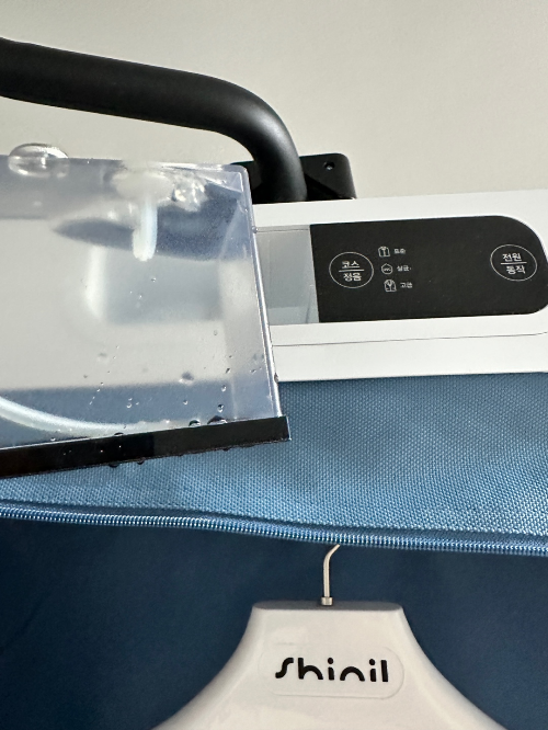 거의 가득 채웠는데 표준모드 한번 사용하니 1/3 정도가 비워졌다. 표준은 구김 펴는 기능이라서 물을 뿌려주고, 살균은 진동과 광선 등을 쏘는 거라 물을 안 쓴다고 한다.