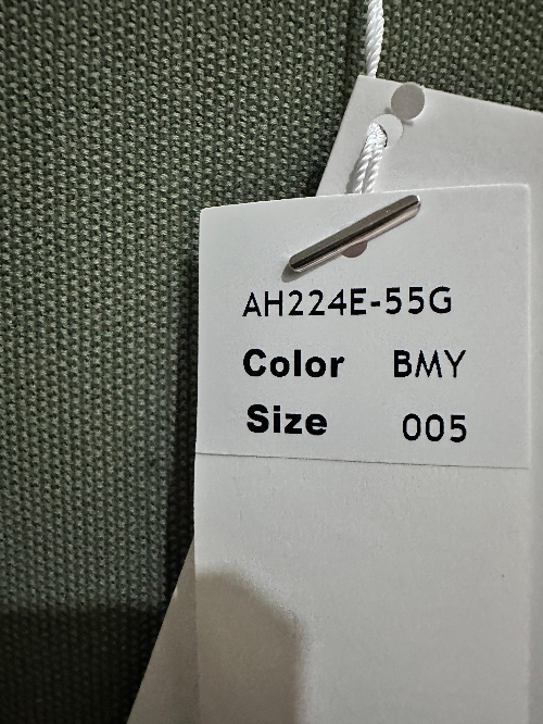 면 100%로 구성되어 있고 상품번호는 AH224E-55G이다. 사이즈 105는 5 사이즈이다. 건조기 불가에 울코스세탁가능하다.