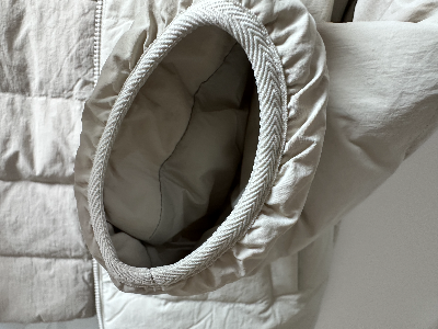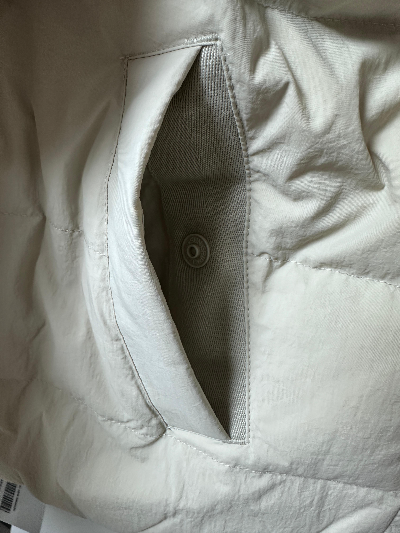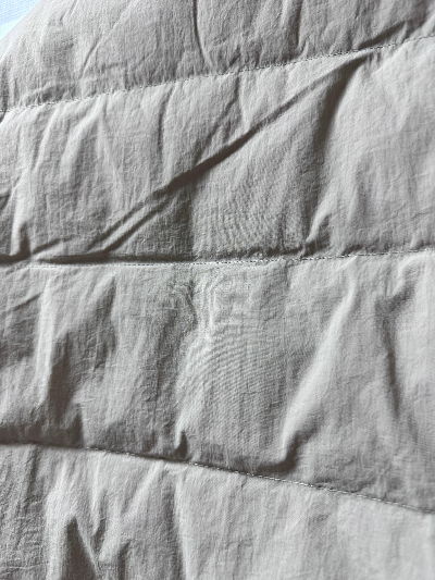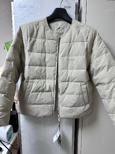 패딩은 넥이 없는 스타일로, 몸에 딱 맞는 재질이었다. 위에서 말했듯 굉장히 매트한 질감에 큰 디테일이 없는 기본 경량패딩이다.