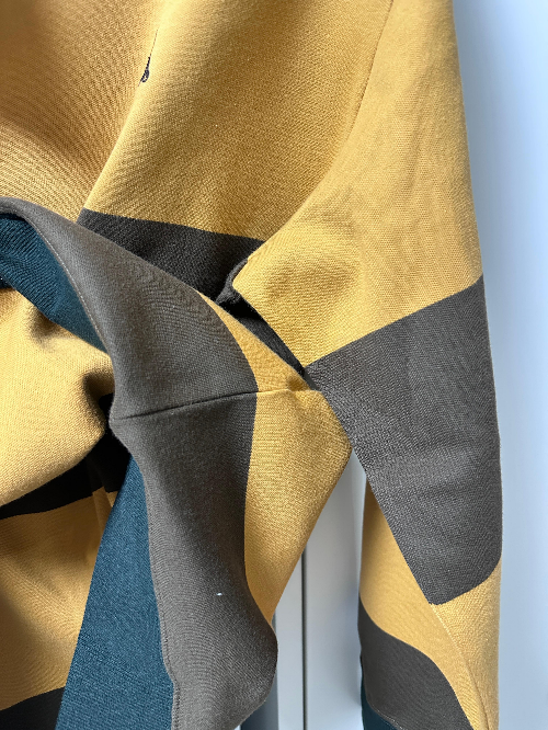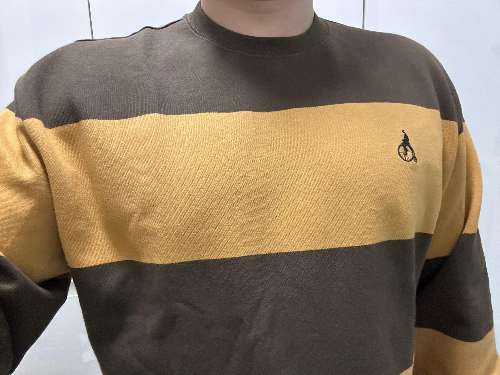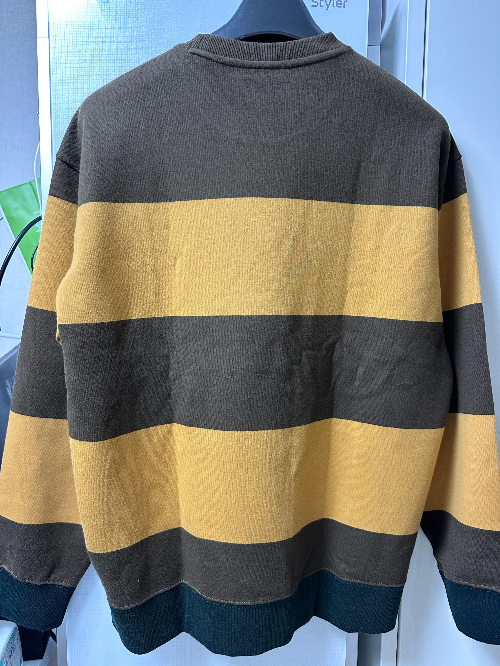 두 개가 아닌 밑단이 다른 색이라 총 3개의 색상이다. 개인적으로는 밑단도 통일성이 있었으면 좋았겠지만, 나쁘진 않다. 입고 다니면서 크게 신경 쓰이지는 않는다. 앞뒤로 블록 스트라이프 외에는 큰 포인트는 없지만, 색감과 디자인 자체가 포인트인 맨투맨이다.