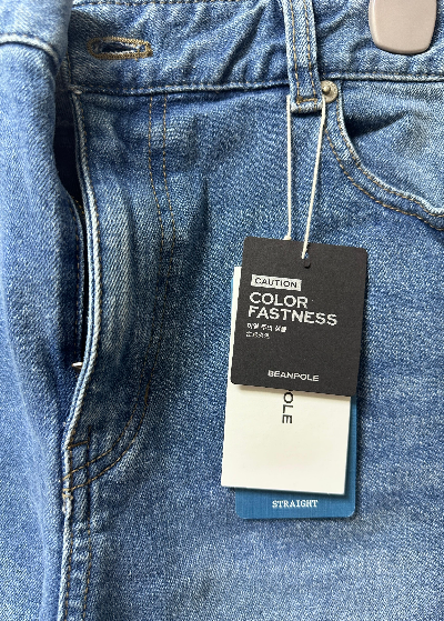색상은 밝은 청색이다. 그래서 겨울보다는 여름느낌이 날수도 있는데, 겨울제품이 맞다. 겨울에 어두운 계열위주이기 때문에 역으로 밝게 나왔다. 앞뒤로 특별한 디테일은 없고, 허리밴딩도 없다.